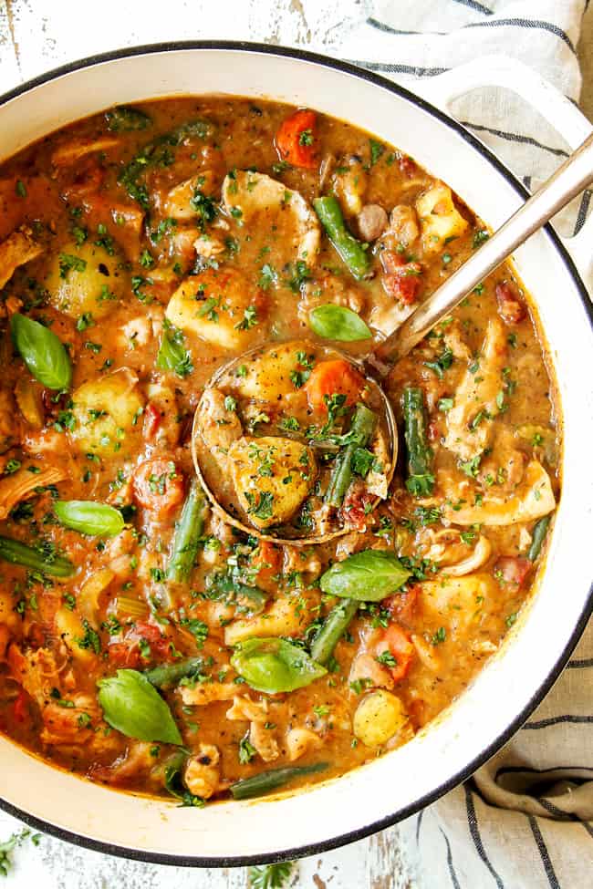 The Chicken Stew is loaded with juicy chicken, buttery potatoes, hearty carrots and celery, fresh green beans and aromatic onions, garlic and herbs swaddled in a rich, cozy gravy-broth. Itโs easy, hearty, warm, nourishing comfort in a bowl and SO good youโll want to make it again and again!ย