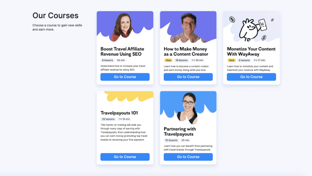 One great feature that I love about Travelpayouts is that you get access to their affiliate marketing courses when you are an affiliate for them.