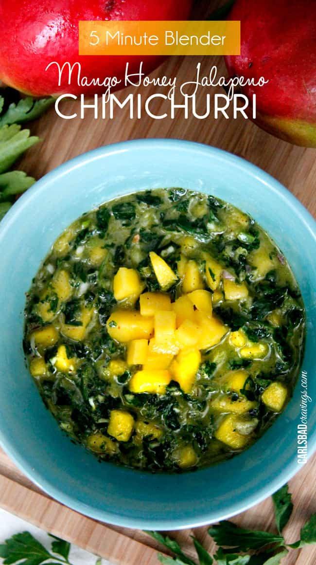 Iโm a HUGE fan of chimchurri and one with mango and jalapeno is just brilliant! Mango is my FAVORITE and the sweet with the spicy is outta this world!