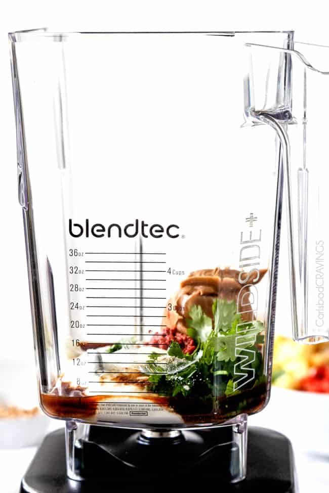 Toย make make your Thai Peanut Salad Dressing smoother, simply continue to puree.ย Take not to OVER blend, however, or else you will end up with a very watery dressing.ย For best results, blend just until smooth.