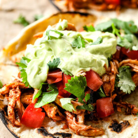 Do you have a recipe for the tacos you have pictured with this crema? Iโd love a good chicken taco recipe and the ones pictured look amazing