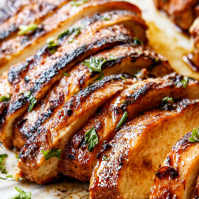The best Balsamic Chicken Marinade for juicy, effortlessly flavorful (the marinade does all the work!), versatile, chicken every time. The chicken is seeping with complex savory, tangy, slightly sweet, herbaceous notes and elevates everything it touches to โinsanely deliciousโ (just read the reviews)! Cook it on the stove, grill or oven (all methods included) and serve simply or try it in grain bowls, salads,ย wraps, pasta,ย or sandwiches.