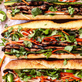 Readers call this Banh Mi Sandwich Recipe (Vietnamese Sandwich) โFantastic,โ โAMAZING,โ โoutstanding,โ โKEEPER,โ etc. thanks to the elevated lemongrass marinade, tangy pickled vegetables, chili garlic mayonnaise and toasted buns! ย Itโs a marinate-and-cook recipe that comes together astonishingly quickly once itโs time to sear the pork.ย This step-by-step banh mi recipe is full of tips, tricks and variations, like how to make with chicken as well!