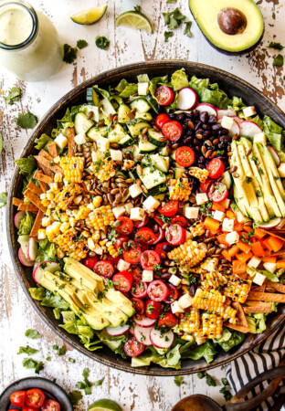 This Enchilada Casserole recipe is the main event and doesnโt need much of a supporting cast, but I always love serving it with a green salad and some sort of fruit. Here are a few side ideas: