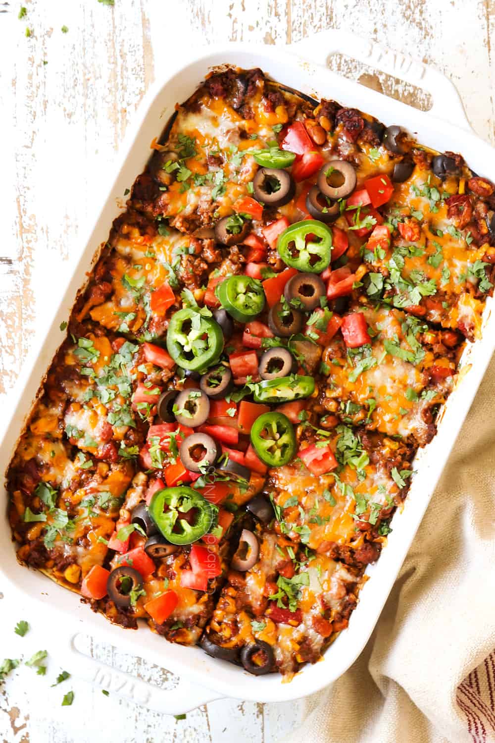 This Enchilada Casserole is even better with ย toppings! ย Itโs fun to create a topping bar and then let everyone pile on their favs.
