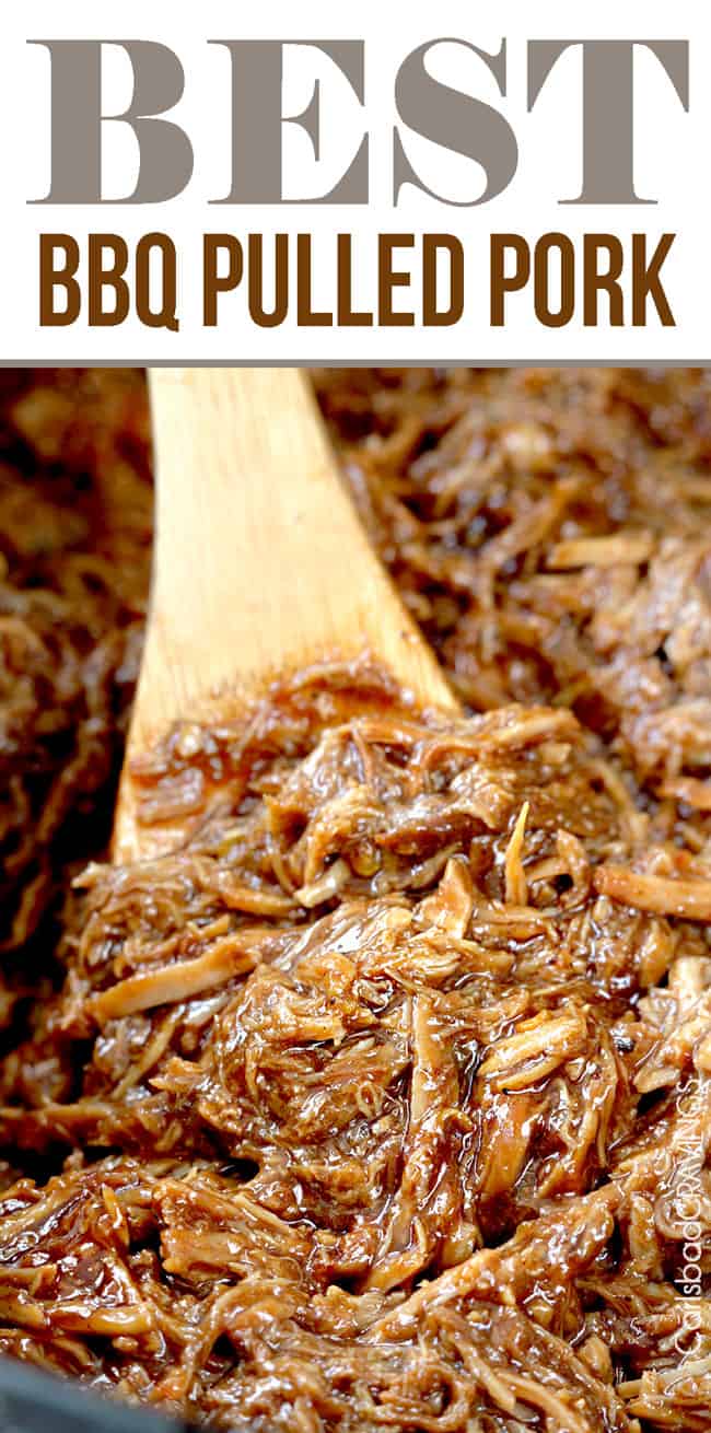 BBQ Pulled Pork is fabulous for making ahead or serving a crowd because most of the work is hands-off cooking.ย To make ahead, cook the pork completely all the way through adding the barbecue sauce.ย Transfer the pork to the refrigerator directly in the ceramic crockpot insert or Dutch oven. The next day, warm the pork in the crockpot on LOW for 1-2 hours or gently warm on the stove. Add a splash or additional barbecue sauce if it seems dry after itโs warmed through (it will release juices as it heats up).