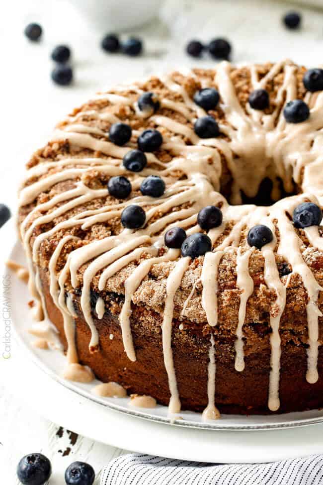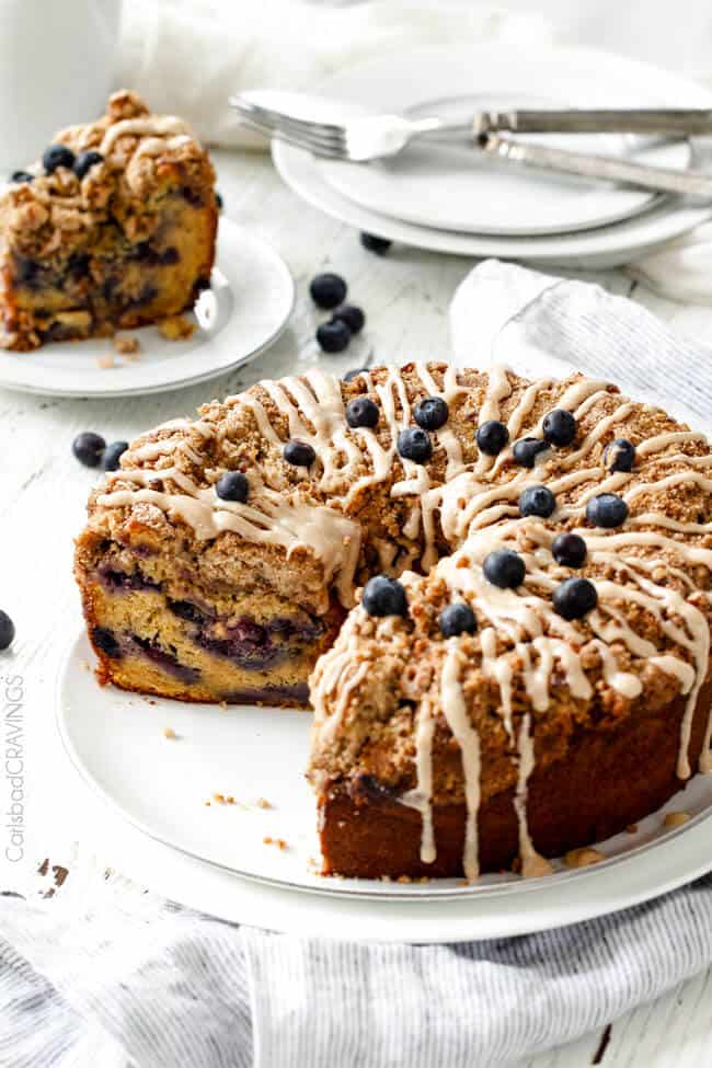 - EXTRA BLUEBERRIES.ย No one wants to bite into Blueberry Coffee Cake without pops of juicy blueberries in every bite, so this recipe is loaded with one pint of juicy blueberries!