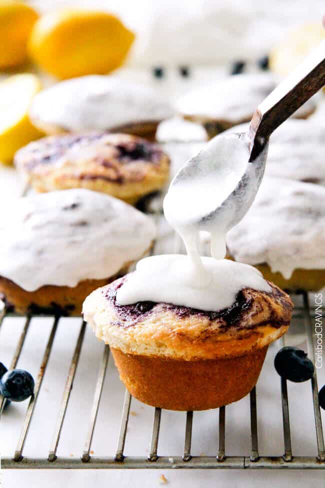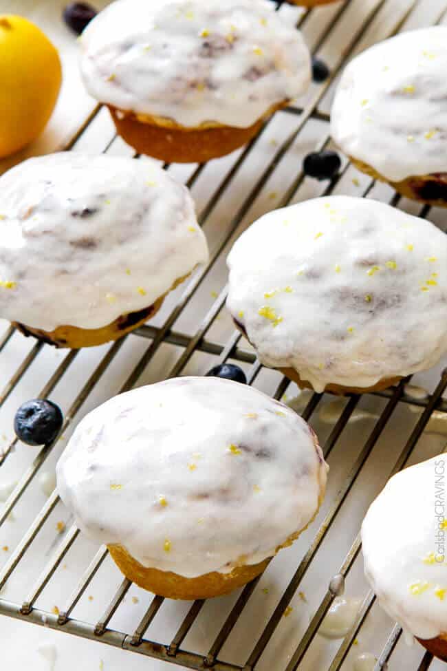 - LEMON GLAZE.ย The Lemon Glaze is optional but I think it pushes these muffins over the top to the BEST Blueberry Muffins.ย ย Itโs sweet, tangy, silky bliss.ย I could eat it by the spoonful.