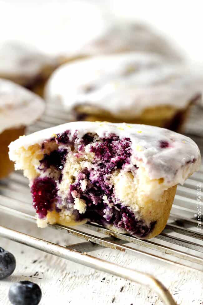 THE BEST muffins I have made to date, they were a huge hit with everyone. The second time I made them I used more blueberries, just over 3 cups, and I added lemon zest to the batter and glaze. AMAZING. Thank You for this recipe!!!!!!