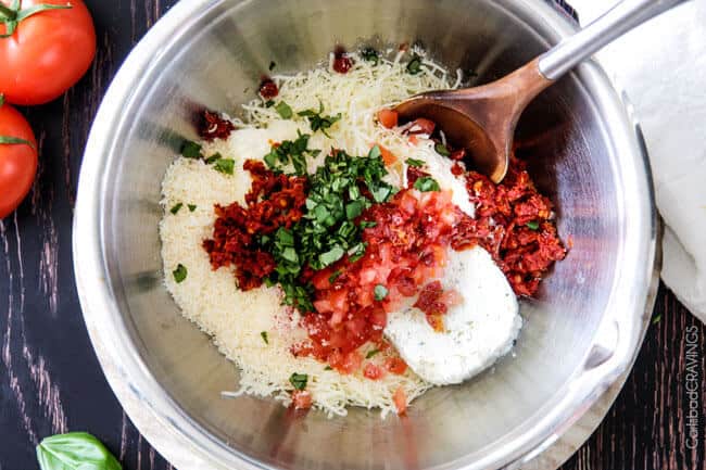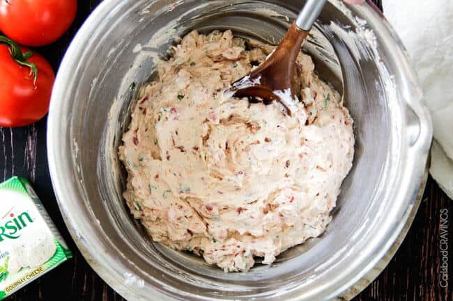 - You just want the firm outer part of the tomato so when you cut your tomatoes, scoop out the inside flesh and seeds so all that remains is the firm part โ we donโt want the extra moisture in our cheese ball. After you chop your tomatoes, pat them dry once more with a paper towel