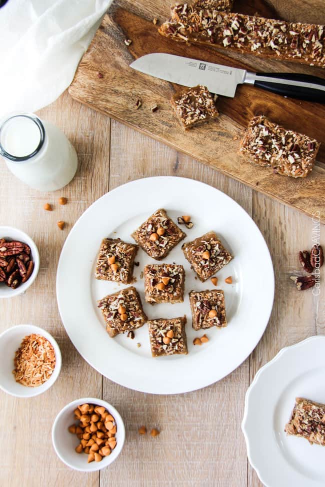 - add-ins:ย I use pecans, sweetened coconut flakes and butterscotch chips in this recipe because the combination is sublime, but feel free to use whatever your heart desires!ย Iโve included all sorts of ideas below.