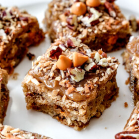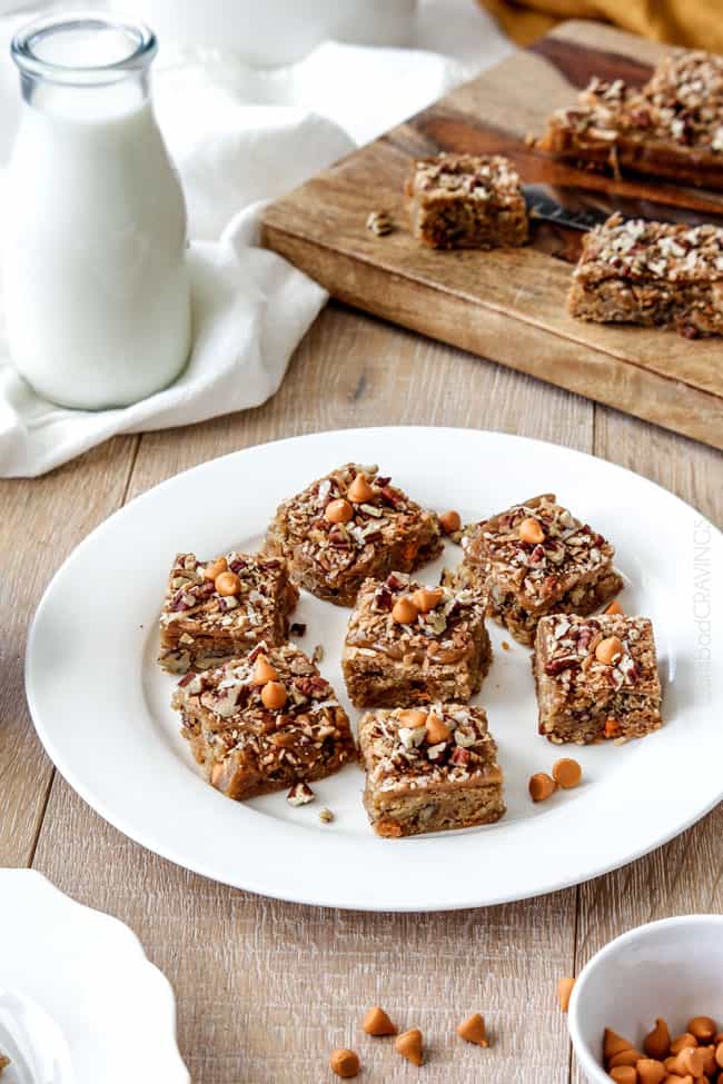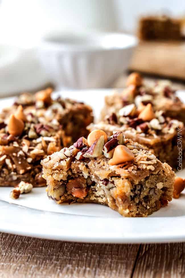 Customizable.ย With such an amazing base, you can customize these blondies with any mix-ins of your choosing โ but today we are pushing into the ridiculously delicious realm with the infusion of butterscotch chips, coconut, and pecans cocooned in every soft ย brown sugar blondie bite.