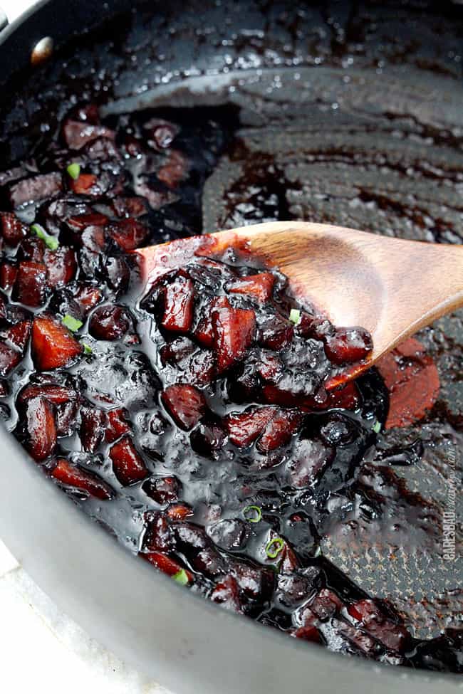 Now let me show you how this Cranberry Apple Balsamic Reduction earns its title โEasy.โ First, you add the balsamic vinegar, soy sauce, sugar and Swansonยฎ Louisiana Cajun Flavor Infused Broth to a skillet (NOT saucepan or it will take much longer to reduce) and simmer for 5 minutes. As the ingredients simmer, they are reduced to a sweet sauce with slight layers of spice thanks to the Cajun Flavor Infused Broth. Swansonยฎ Louisiana Cajun Flavor Infused Broth is packed with the robust flavors of Cajun seasonings, green bell pepper, celery, onion and garlic, so there is no need to add any spices to the sauce. Itโs a one-stop product โ love it!