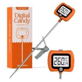 - Cook Caramel: Once the butter has melted, reduce the heat to medium and attach a candy thermometer, ensuring itโs not touching the bottom of the pan. Continue to cook over medium heat, stirring often (make sure to get under the thermometer), until the candy thermometer reads 245ยฐF. While cooking, occasionally brush down the sides of the pan with a water-moistened pastry brush.