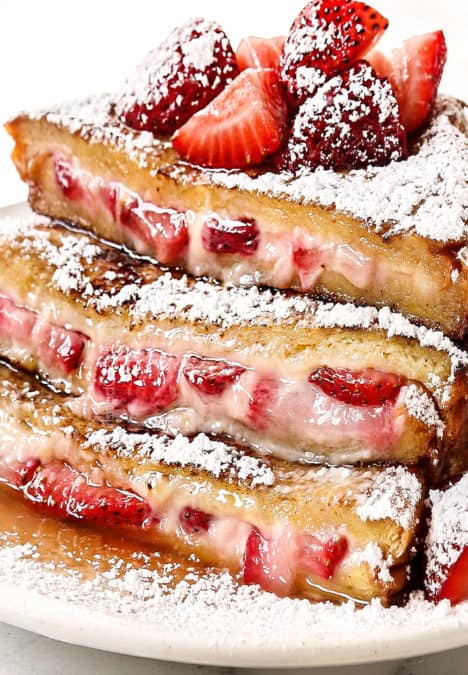 Angel Food Cake French Toast with Cream Cheese and Strawberry Syrup