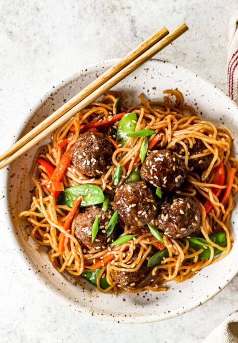 Asian Meatballs with Yakisoba