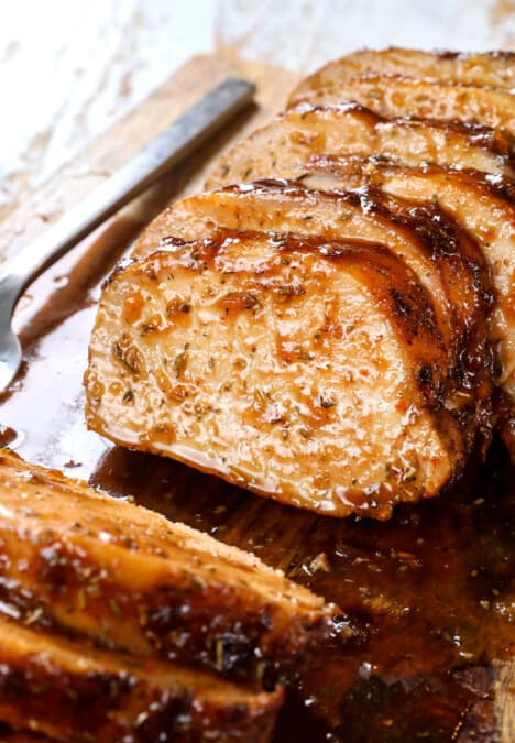 oven roasted pork tenderloin cooked in balsamic sauce sliced in foil