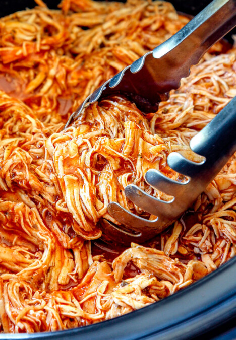 Easy Slow Cooker Shredded Mexican Chicken simmered with Mexican spices, salsa and green chilies for the BEST Mexican chicken perfect for tacos, burritos, tostadas, salads, etc. Couldnโ€™t be any easier!