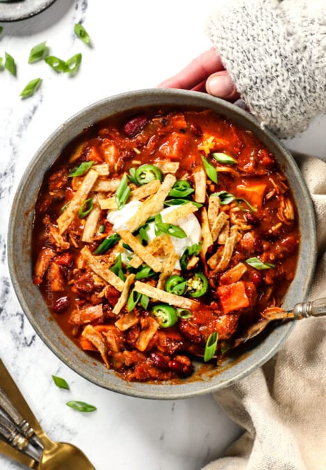 This is the best Slow Cooker Creamy White Chicken Chili I have ever had! Its soooo creamy without heavy cream, so easy, and the layers of flavors are out of this world!