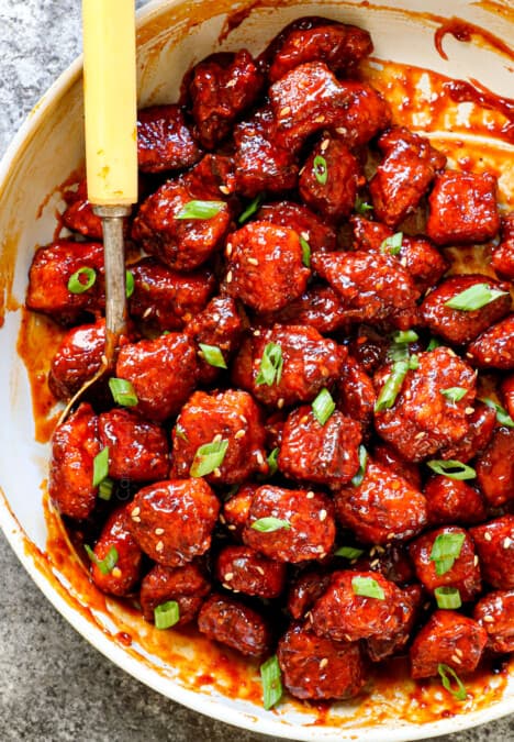 showing how to serve Asian chicken marinade recipe in a bowl with rice and vegetables