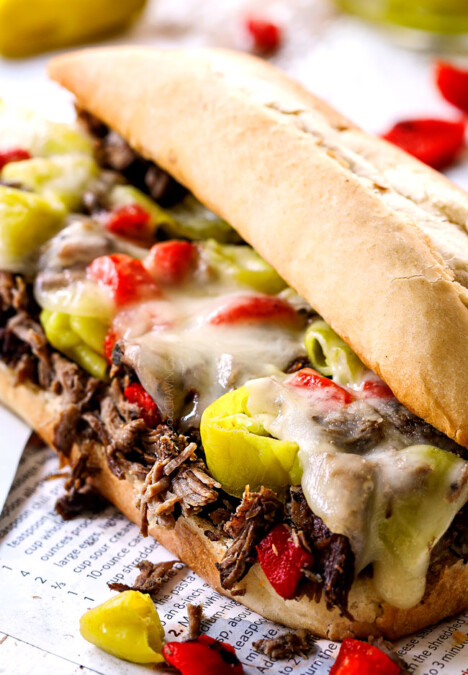 Easy, customizable LOADED Slow Cooker Italian Beef Sandwiches are crazy tender, seeping with flavor and unbelievably delicious! They make the easiest dinner or party food and super fun (make ahead!) sandwich bar!