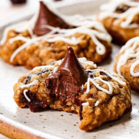 Cherry Blossom Cookies received a glow-up with this recipe! They win for flavor and texture with their soft and chewy oatmeal cookie base infused with warm spices, studded with sweet-tart cherries, and a secret ingredient that makes them unbeatable. Best of all, the cookies stay chewy for days!