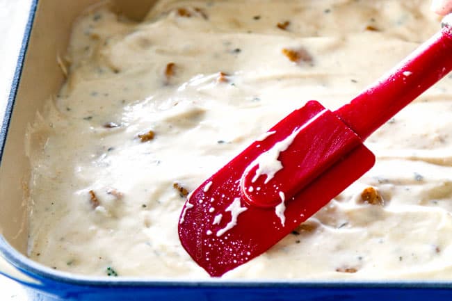 - Homemade Cream of Chicken Soup:ย My homemade cream of chicken soup is epic.ย It starts with a roux then you whisk in chicken broth, and milk whisked with cornstarch to create a wonderfully thick sauce.ย You want the sauce to seem a little on the thick side because it will thin out some in the oven.ย To this luscious sauce, we stir in chicken bouillon, Dijon, Worcestershire sauce onion powder, garlic powder, dried parsley, ground cumin, and pepper.ย It is velvety, seasoned bliss.
