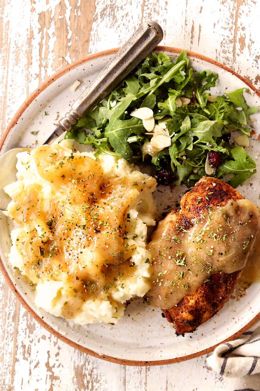 - Season to taste.ย As with all recipes, make it your own!ย With this recipe, youโll want to season to taste at the very end and add salt to taste. The amount of seasonings will depend on personal preference and what you are serving the gravy with. If you are serving the gravy over simple, mashed potatoes, you may wish to increase the seasonings. If you are serving the gravy over already seasoned chicken, you may wish to leave the seasonings alone.