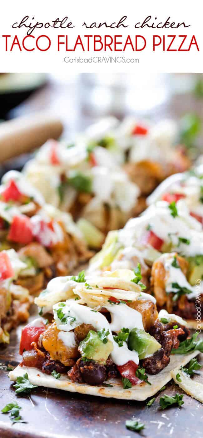 Impatient for Chipotle Ranch Chicken Taco Flatbread Pizza bursting with all your favorite taco textures and flavors. ย ย A whole new level of deliciousness!