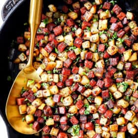 Corned beef is rich, salty, spicy, and tender with so many layers of flavor itโs the perfect flavor bomb to make this breakfast hash recipe!