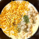 - Step 3: Let simmer. Whisk together the broth and cornstarch, then add to the Dutch oven. Add the evaporated milk, pasta, bouillon and remaining spices. Pop the lid onto the Dutch oven, bring it to a simmer, then let cook for about 15 minutes or until the pasta is al dente.