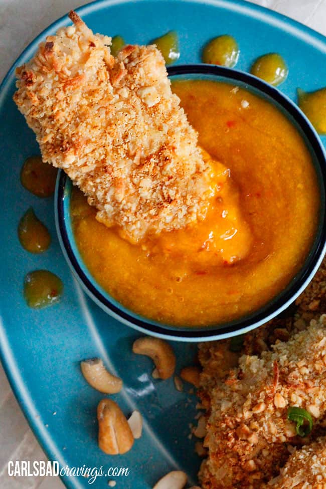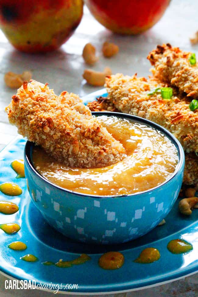 Finally. A healthy recipe for breaded chicken that does in fact taste like its fried. It was a big hit with everyone. The only bad news is that we didnโt have ripe mangoes to try the sauce. As soon they do ripen we ll make again. Maybe next time with fish. We did kind of over toast the cashews so next time might use untoasted. Also I love that we didnโt have to buy anything to make this โ so flavorful already using staple pantry things for us. We made with freshly grated coconut which we get easily in our supermarket and often so always looking for recipes to help use that up.