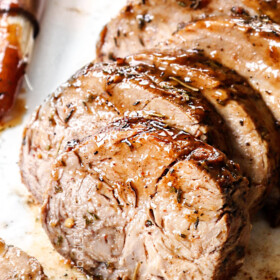 I HIGHLY recommend an instant-read meat thermometer if you donโt own one. They are a small investment and come in handy ALL the time to eliminate all of the guess-work. You simply cannot make perfectly cooked pork loin roast without one.ย As long as you keep your instant read thermometer handy โ your pork loin will be one of the juiciest pieces of meat youโve ever sunk our teeth into.ย ย