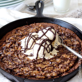 Even better when you eatย the soft, rich, decadentย Deep Dish German Chocolate Cake Skillet Cookieย immediately right out of the skillet โ the deep skillet. ย The deeply delicious skillet.
