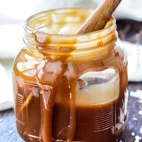 One of my favorite recipes ever is myย Easy Creamy Caramel Sauce, and judging by reviews, its one of my readers favorites too. ย My sister-in-law even gifts jars of the caramel at Christmas timeย -such a great idea- Iโd want that gift over anything any day!