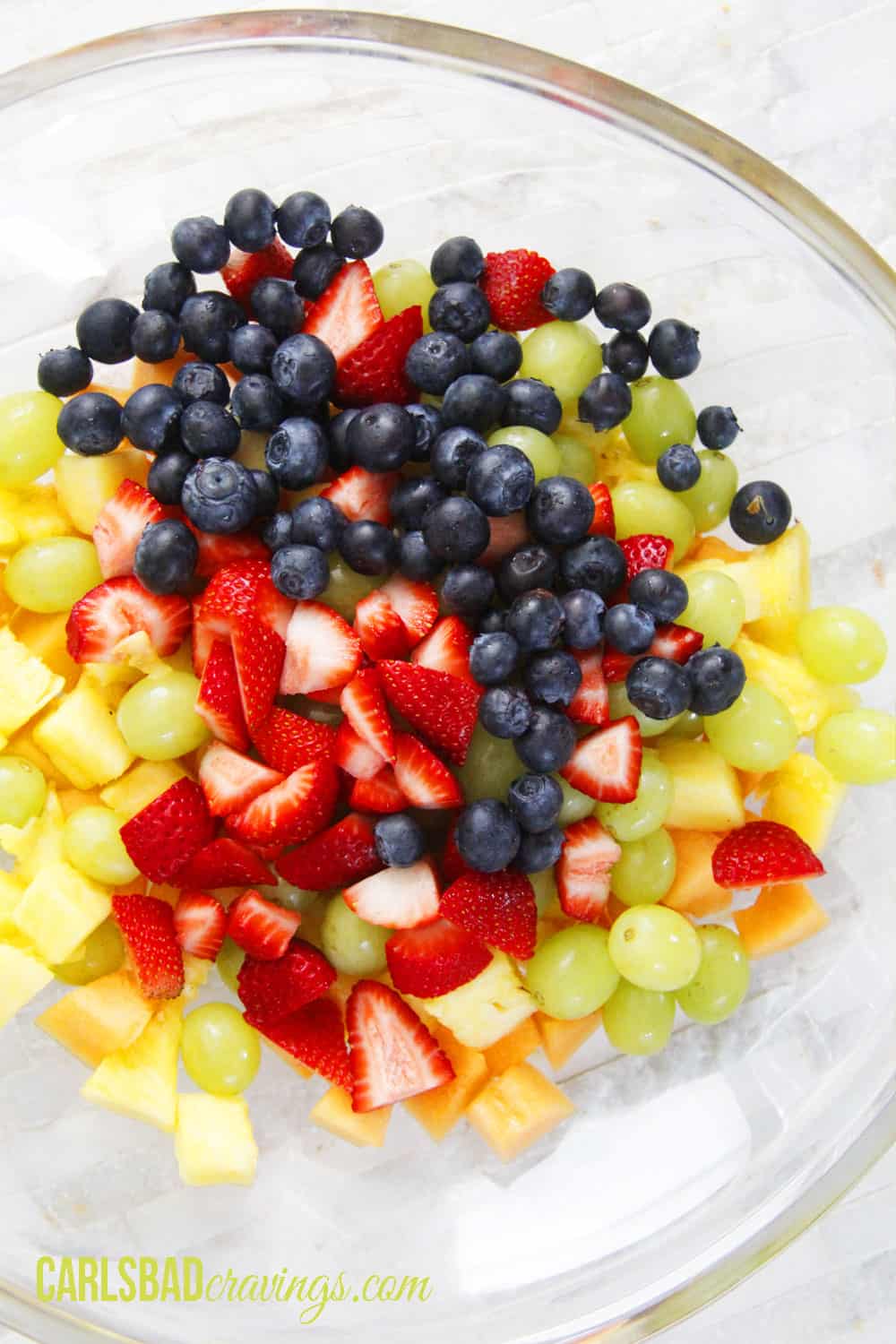 - You can prep the fruit salad 24 hours in advance by chopping all of the fruit and storing them in separate airtight containers or baggies soย all you have to do is toss everything together.