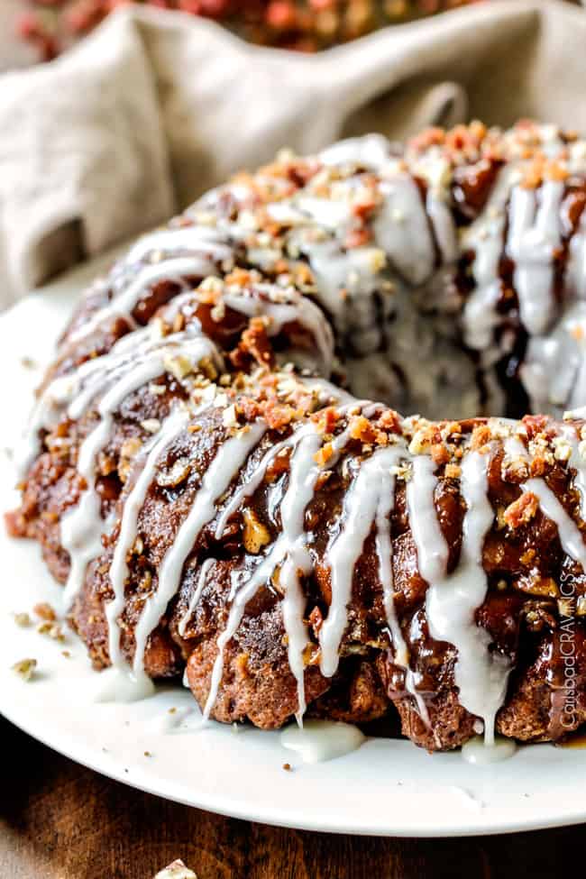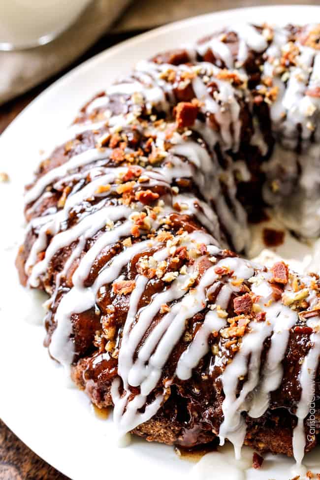 - You can omit the nuts and bacon and have a caramel cinnamon monkey bread.