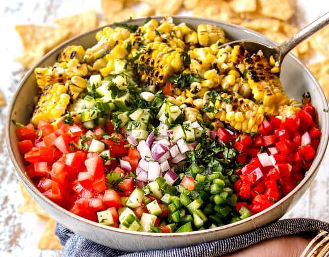 - ASSEMBLE: Add all of the remaining Corn Salsa ingredients to the bowl and toss to evenly combine. Season with additional lime juice and/or salt and pepper to taste. Set aside (tastes best if allowed to rest for 20-30 minutes).
