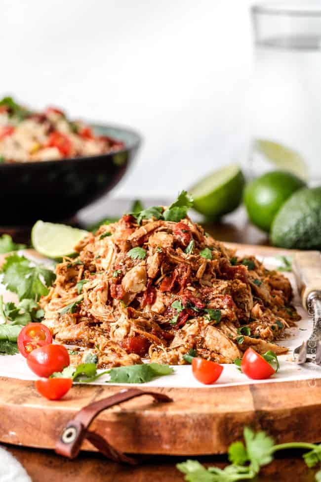 Need is a strong word. ย But when it comes to food and recipes, I am convinced you NEED this go-to, easy, crazy delicious Slow Cooker Shredded Mexican Chicken at your fingertips. In fact, it is the only all purpose, Slow Cooker Shredded Mexican Chicken you will ever need!ย It joins the cast of my other stellar back-pocket Mexican staples of Tacos Al Pastor,ย Carne Asada,ย ย Slow Cooker Pork Carnitas, Baja Fish Tacos, Beef, Bean and Cheese Burritos, Chicken Fajitas, Steak Fajitas, Green Chile Chicken Enchiladas and Slow Cooker Barbacoa Beef.ย ย And of course, every one needs a killer Chicken Tortilla Soup recipe.ย