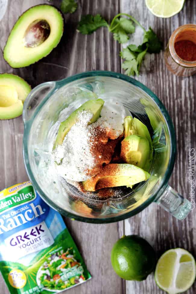 - Add all the avocado crema ingredients to a blender, then blend until smooth. Chill in the refrigerator.