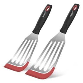 Youโll need a thin spatula that will carefully slide under the delicate pancakes without getting caught on the edges. It also needs to be long enough to cradle the whole pancake.ย For this purpose, I love myย fish spatula. ย It is made for flipping delicate fish, and its long, thin, delicate shape is also perfect for flipping pancakes!