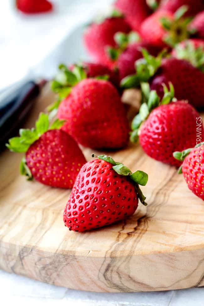 Itโ summer, so itโs time for strawberries!ย Because strawberries are amazing and juicy and sweet. ย And because Iย crave strawberries every time I pass them in the store andย every timeย I drive past the fields and fields of strawberries by my house.ย