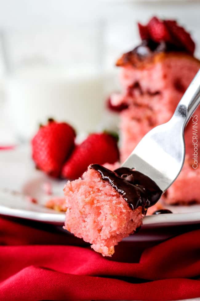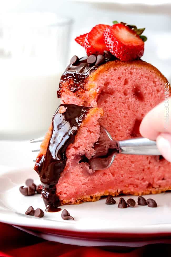 So every bite is chocolate coveredย moist, rich Strawberry Pound Cake.