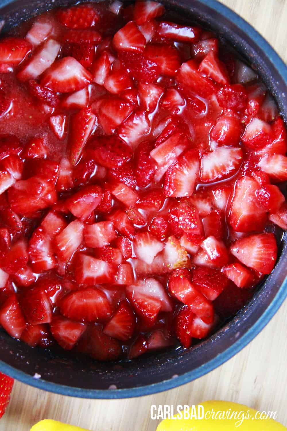 - If you like syrup with slightly more defined strawberries, (as in pictures), dice your strawberries larger.