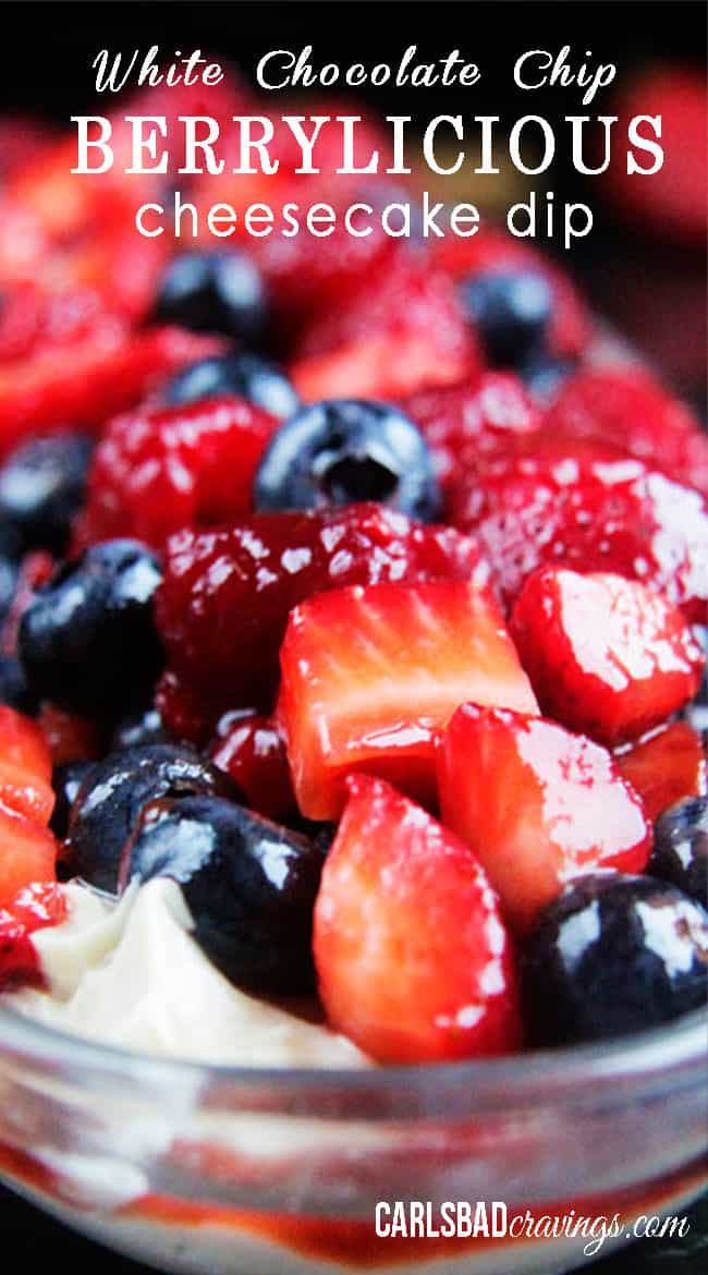 Favorite Carlsbad Cravings Flashback: ย White Chocolate Chip Berrylicious Cheesecake Dip. ย Creamy, easy, delicious, NO BAKE! ย And its BERRYLIIOUS! ย This would be perfect for 4th of July!