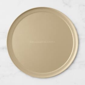 Aside from a pizza pan, you can use a 10-inch greased springform pan, a 9-inch greased cake pan (more difficult to remove), or into a 9โ10-inch circle or square on a baking sheet. ย ย Half sheet (12ร17-inch pan size):ย You may also double the crust, frosting, and fruit and press the dough all the way to the edges of a greased half sheet pan (no need to chill dough for this pan). Note the crust will be slightly thinner.Storage