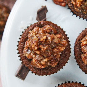 Wow! Are there even words to describe these? Your โheaven sentโ description definitely fits! They are SOOOOO good! German Chocolate cake was my dadโs favorite dessert, too. Since he passed away I never make it, because my husband and kids will not eat anything with coconut. I recently found out that German Chocolate cake is our youth pastorโs favorite treat, and then I saw that you had a recipe for cupcakes, so I knew I had to make them. So glad I did! I made a dozen cupcakes with the coconut/pecan frosting, and left the others to frost to my families liking. Both the cake and the frosting are fantastic! The cake is moist and chocolately, and the frosting is seriously addictive. In fact, I shouldnโt admit it, but after topping the dozen cupcakes, I ate the rest of the frosting with a spoonโฆ.ALL OF ITโฆ.I couldnโt stop! Iโll definitely be making these oftenโฆ.hopefully I donโt eat them all myself. ๐