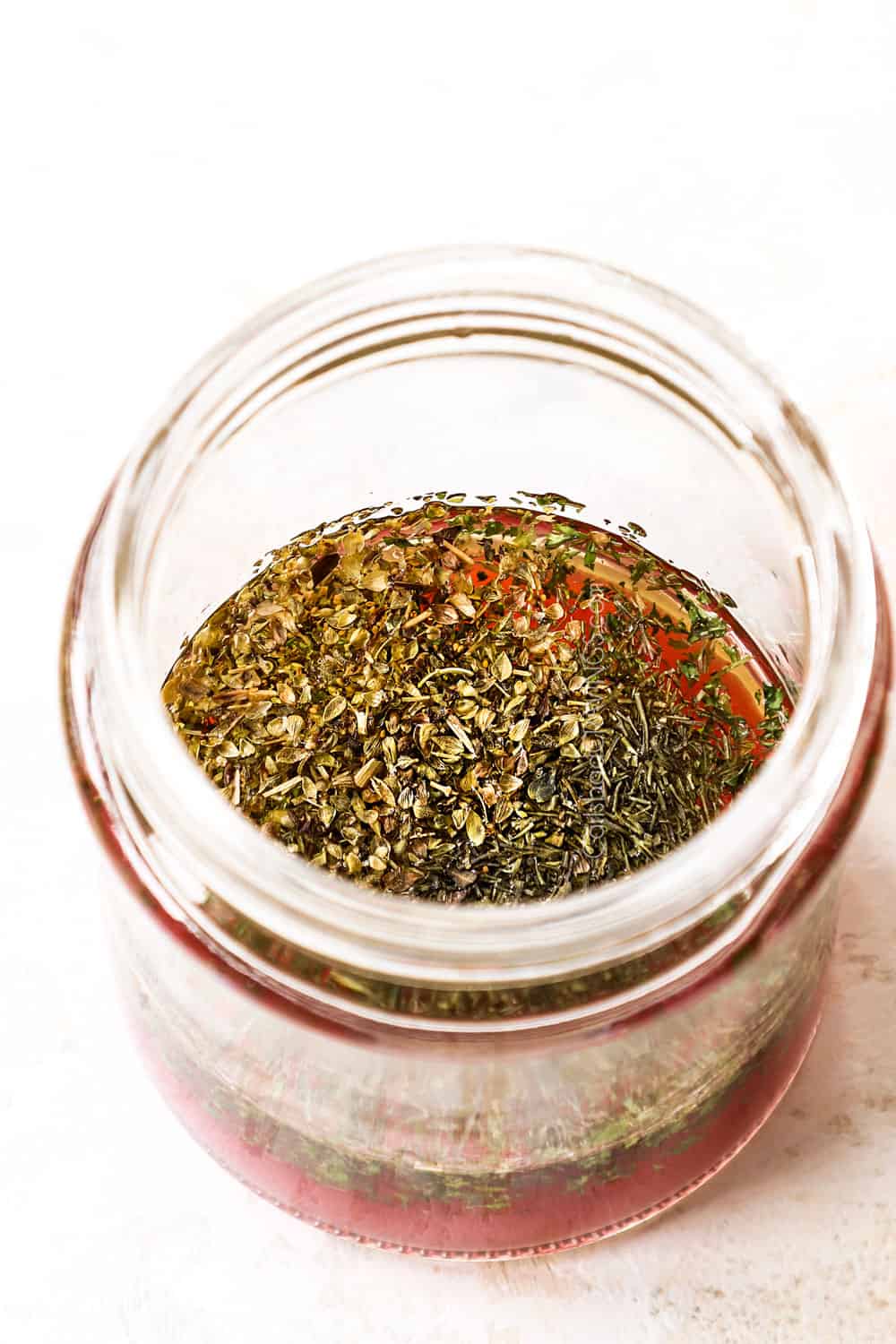 This Greek Salad Dressing is a tangy, robust herbaceous dressing that marries all of the ingredients together.ย Itโs super simple to whip up, hereโs what you need: ย ย