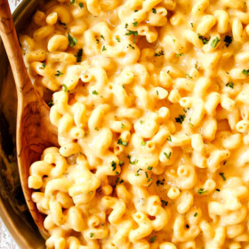 First, this Mac and Cheese boasts multiple cheeses for maximum flavor and superior melting ability. It uses evaporated milk to stabilize all the cheesiness and create incredible silkiness that doesnโt separate, curdle or become grainy.ย Iโve also included tons of tips and tricks to create the smoothest sauce every time.