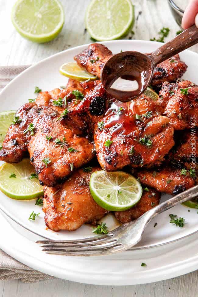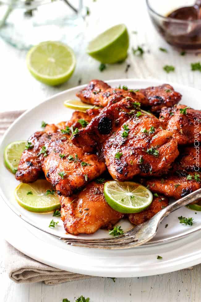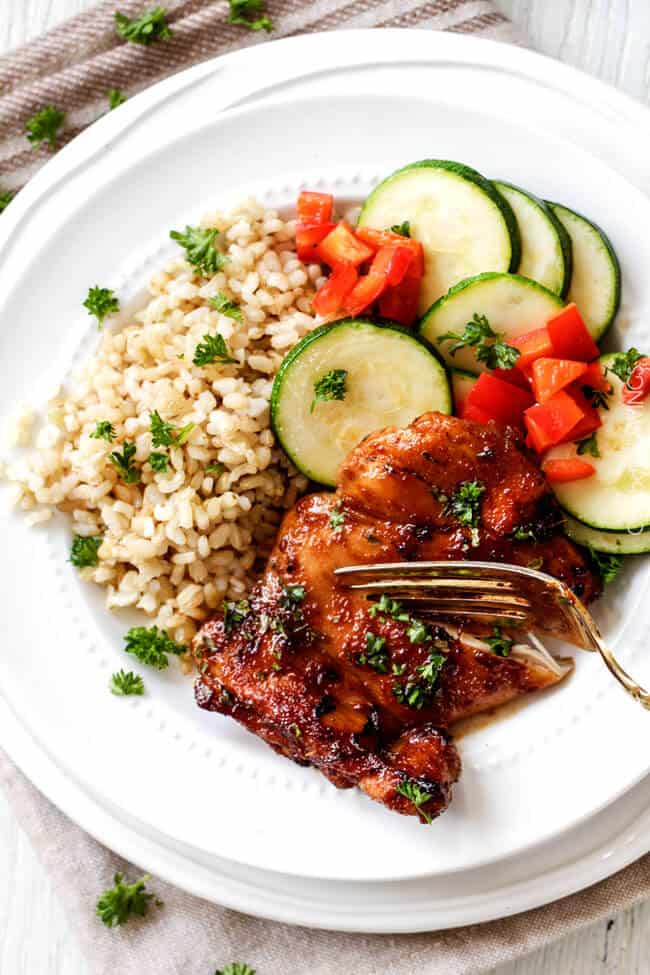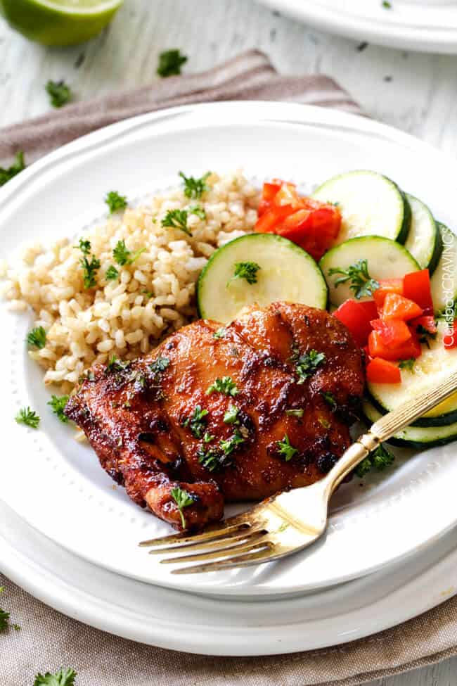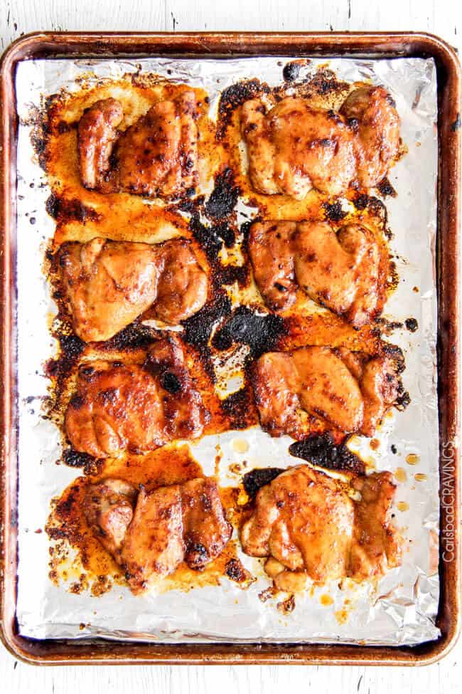 A word about this cooking method โ it is important that you use boneless, skinless chicken thighs instead of chicken breasts. ย Not only are chicken thighs more flavorful, but most importantly, they will remain tender and juicy after cooking at such a a high temperature whereas chicken breasts will dry out. ย